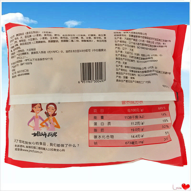 Dacheng sisters kitchen triangle chicken willow boneless chicken willow golden chicken willow fried snack 400g 26 or so
