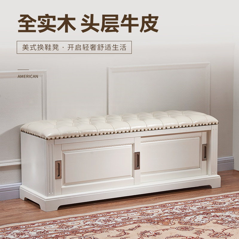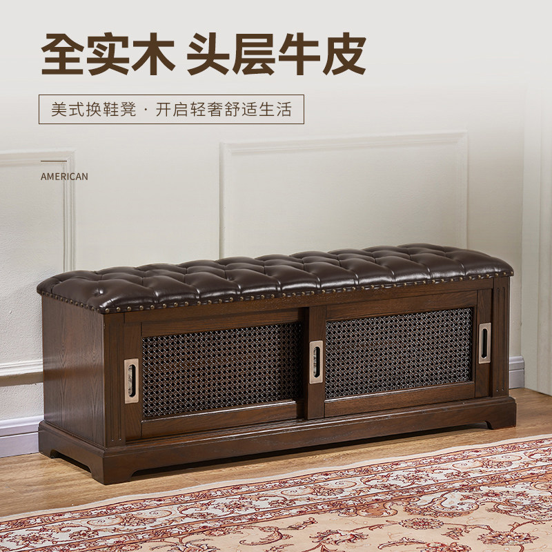 All solid wood first layer cowhide leather modern minimalist door changing shoe stool shoe cabinet seatable shoe cabinet home door