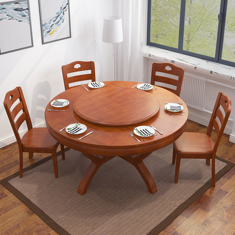 All solid wood round table dining table and chair combination Chinese style 4 people 6 people 8 people simple modern small household dining Round Table