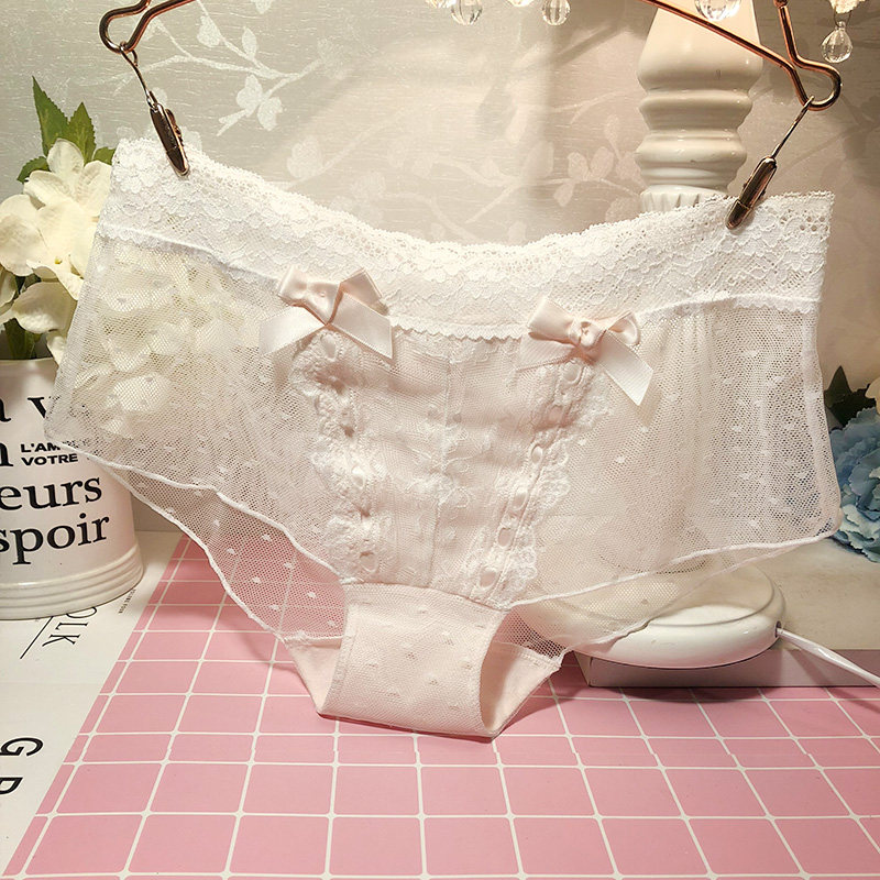 Japanese all lace lace lace lace ribbon color color underwear female pure cotton crotch middle horn pants thin