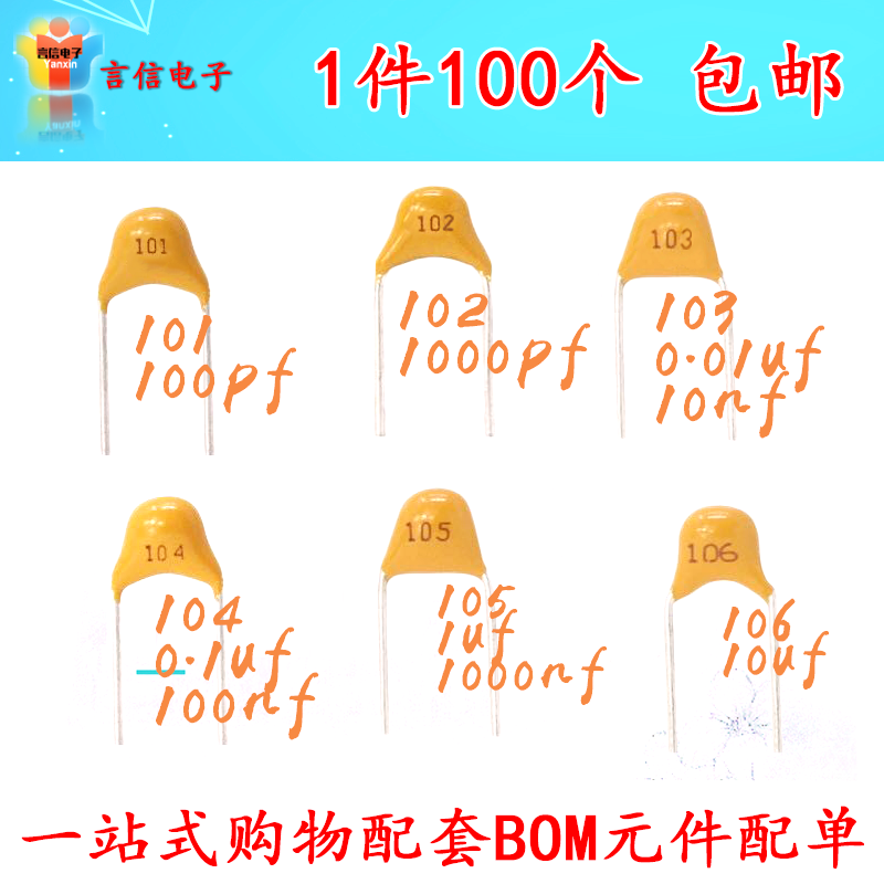 Single stone capacitor 101102103 10NF 0 104 1UF 105 1UF106 1UF106 10UF No polar capacitor