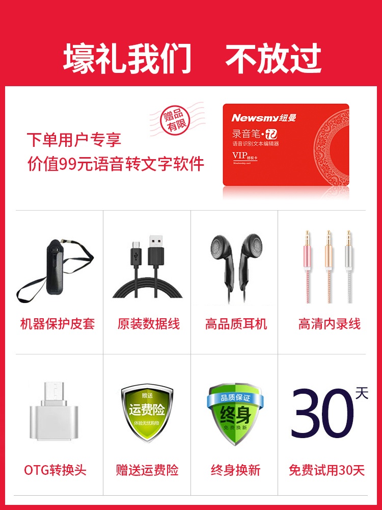 New upgrade and super noise reduction) Newman V19 recorder professional high-definition noise reduction super long standby voice recording to text students in class session recorder small portable recorder
