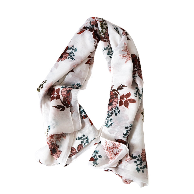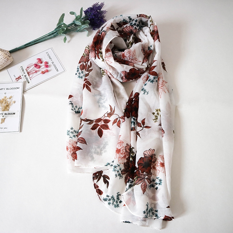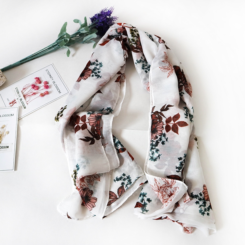 Foreign trade export goods 2018 spring and summer temperament silk scarf European beauty print scarf shawl white background mix and match broken flowers