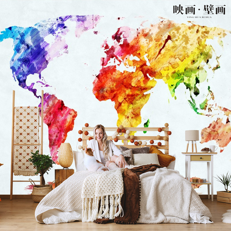 Nordic Abstract Color Map World Landmarks Map Living Room TV Background Wallpaper Seamless Sofa Wallpaper Wall Canvas