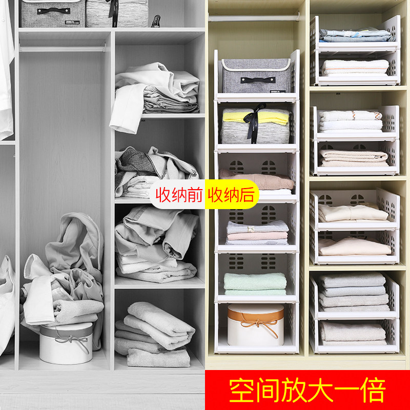 Wardrobe layered partition storage box plastic compartment bedroom clothes storage rack finishing storage basket storage rack