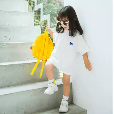 Children's short-sleeved T-shirt summer men's and women's foreign school letter long T-skirt Korean version of the baby medium and long version of loose casual top