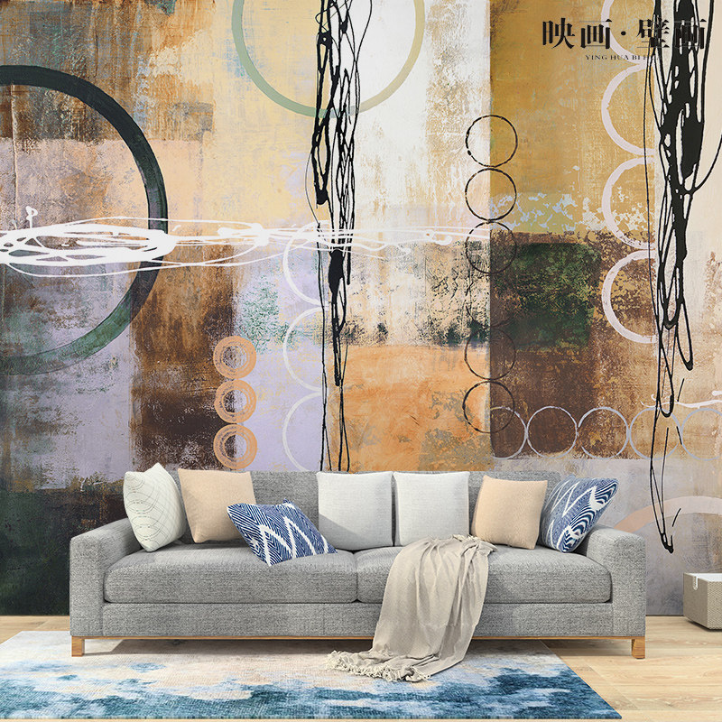 Southeast Asian style abstract circle lines living room tv background wallpaper seamless sofa wallpaper mural wall covering