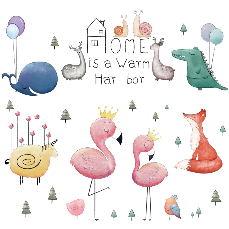 Wall sticker flamingos whale balloon Sen is Nordic in background wall Simple fashion animal sticker sticker