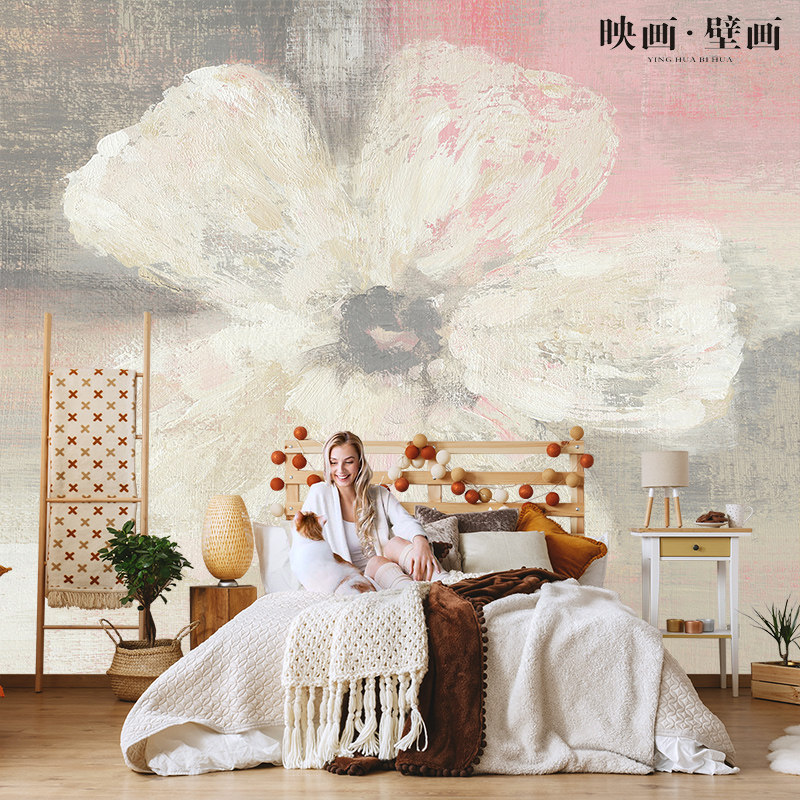 Nordic Hand Painted Abstract White Flowers Oil Painting Living Room TV Background Wall Paper Seamless Sofa Wallpaper Mural Wall Cloth