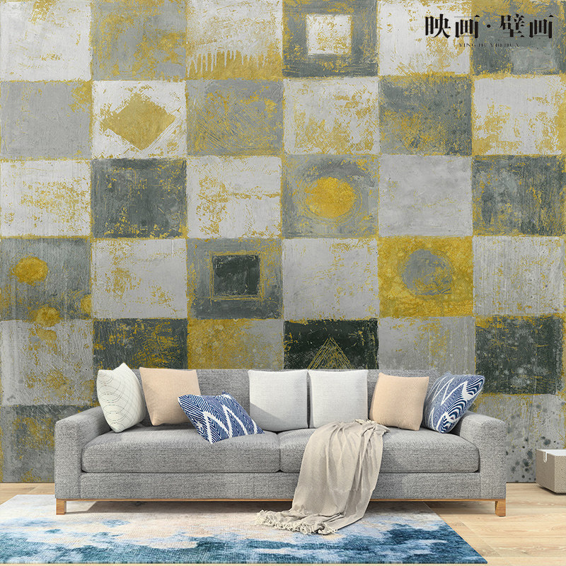 Nordic hand painted retro geometric squares abstract living room tv background wallpaper seamless sofa wallpaper mural wall covering