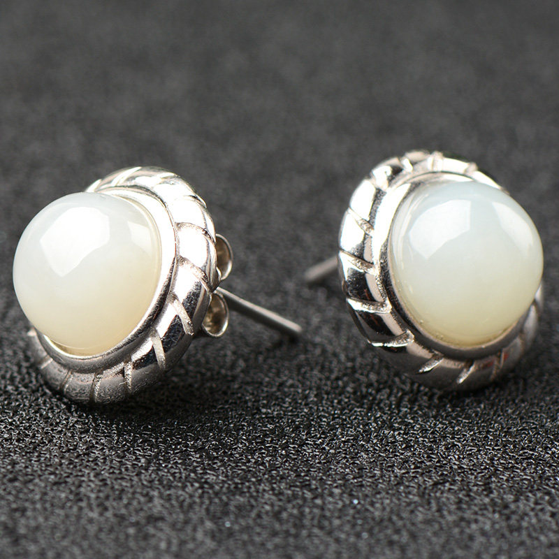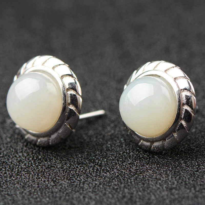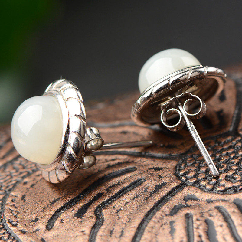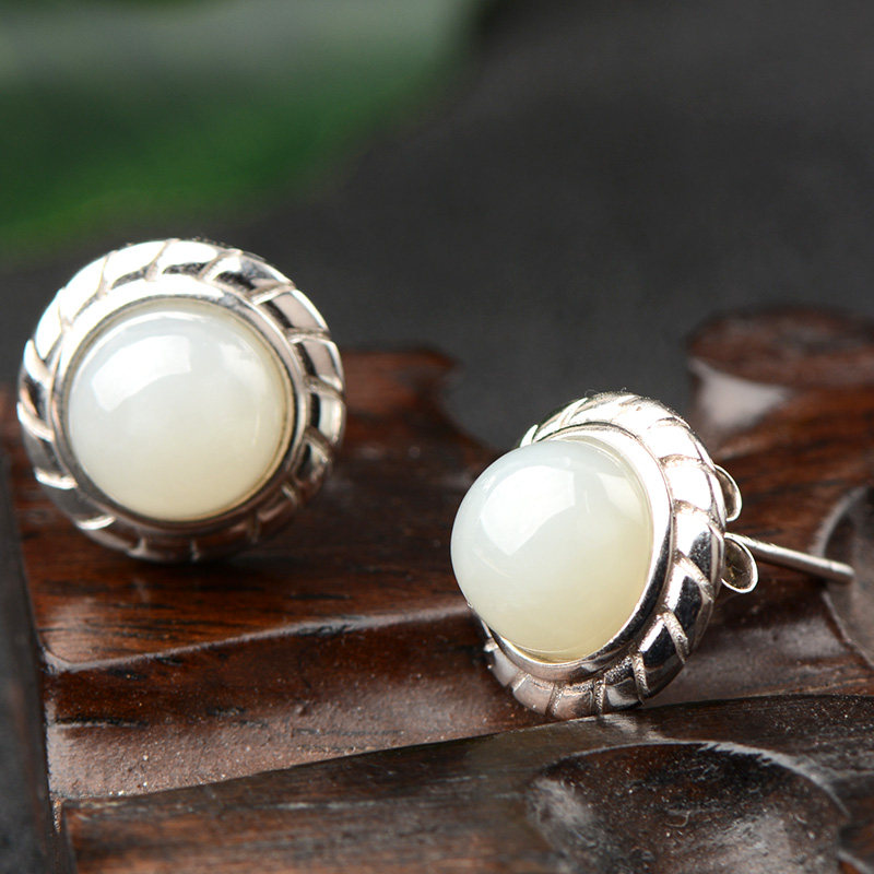 Hetian Jade white jade ear needle round egg surface simple retro exquisite gift for girlfriend to send mother must choose gift