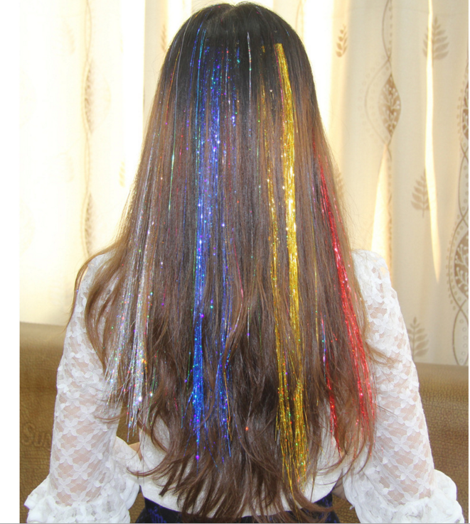 Color wig piece no trace hair wig female pick-up laser hair hair hair hair hair gold wire colorful strip hair hair color silk