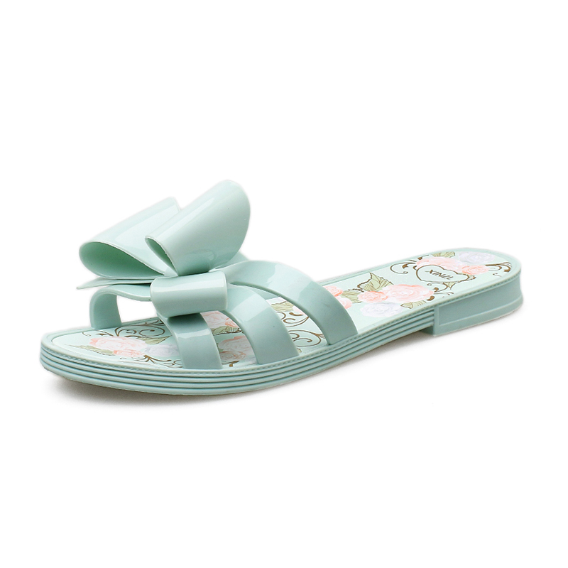 Jelly Shoes Women's Summer Slippers Outside Wearing Sandals Flat Bottom Non-slip Beach Shoes Butterfly Knot Student Printed Shoes