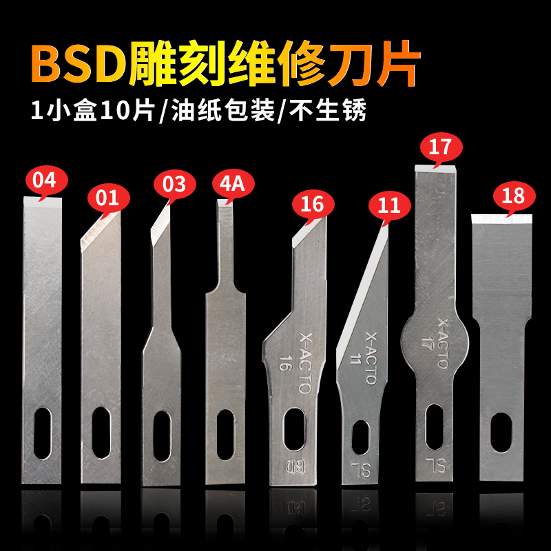 1#Blade (1 pack of 10 pieces) 3#Blade(1 pack of 10 pieces) 4#Blade(1 pack of 10 pieces) 4A#Blade(1 pack of 10 pieces) 11#Blade(1 pack of 10 pieces) 16#