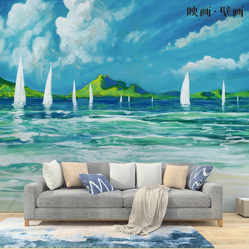 Nordic Abstract Oil Painting Scenery Sea View Sailing only Beauty Living Room TV Background Wallpaper Seamless Sofa Wallpaper Mural