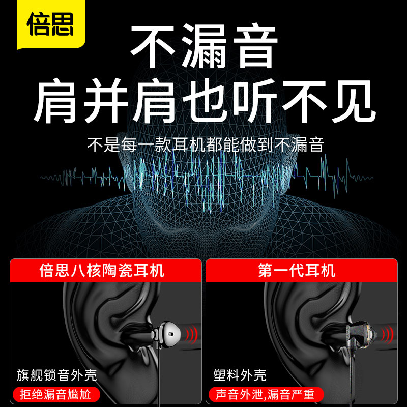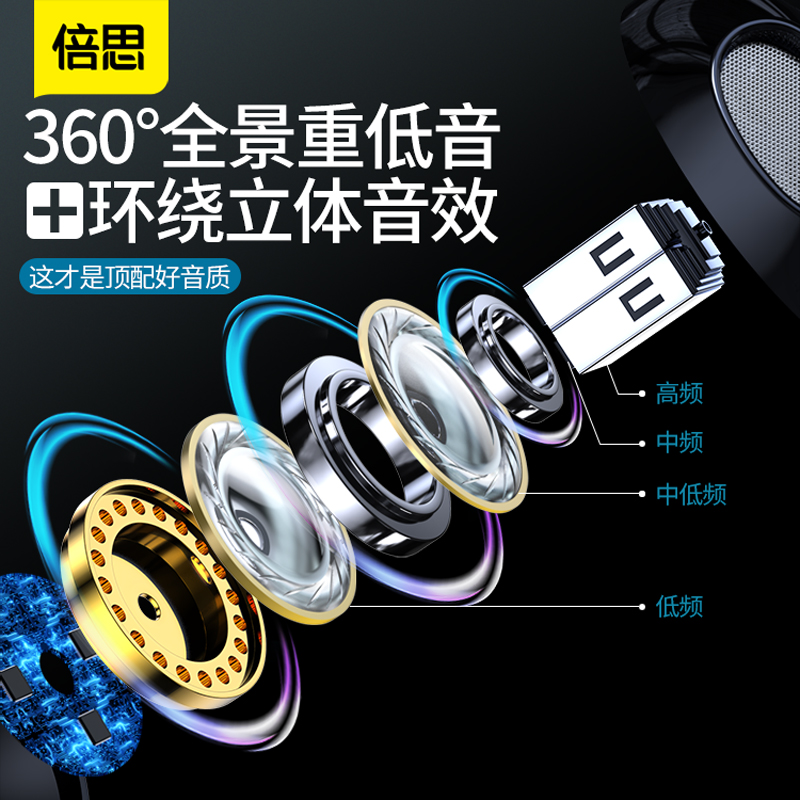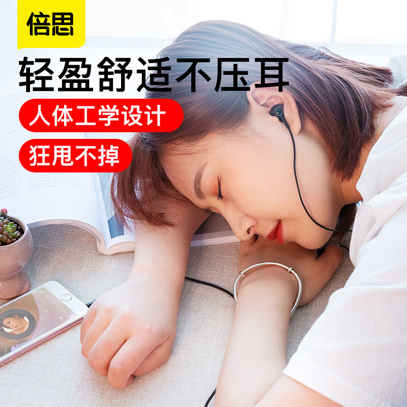 Baseus headphones In-ear wired high quality games Eat chicken K song Sleep mobile phone Computer for Huawei universal Apple vivo Xiaomi oppo Android Subwoofer half noise reduction with wheat round hole