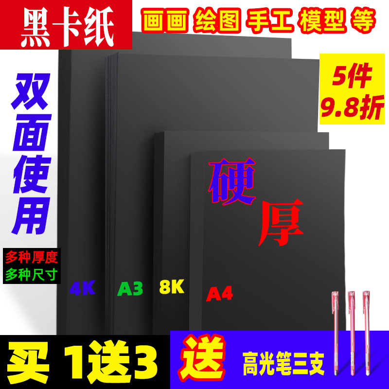 Black cardboard Handmade hard cardboard 350g thickened cardboard Black a4 paper black cardboard 4 open paper Art painting paper a3 black paper 8k cardboard