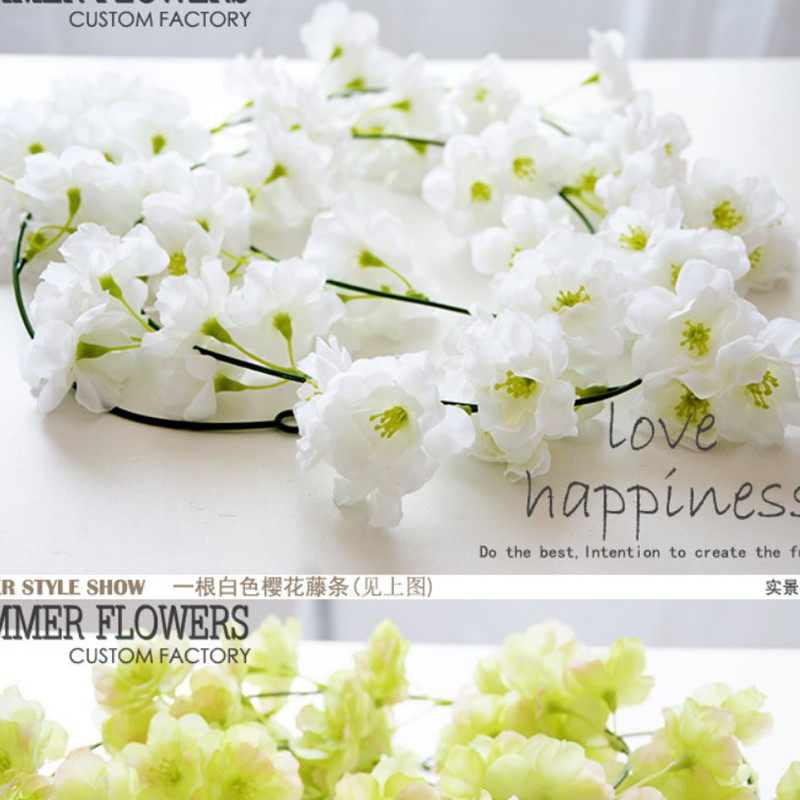 New high simulation 2 m long cherry blossom vines wedding ceremony Flowers Stage Strings Wedding Arch Flowers Vines Winding False Flowers