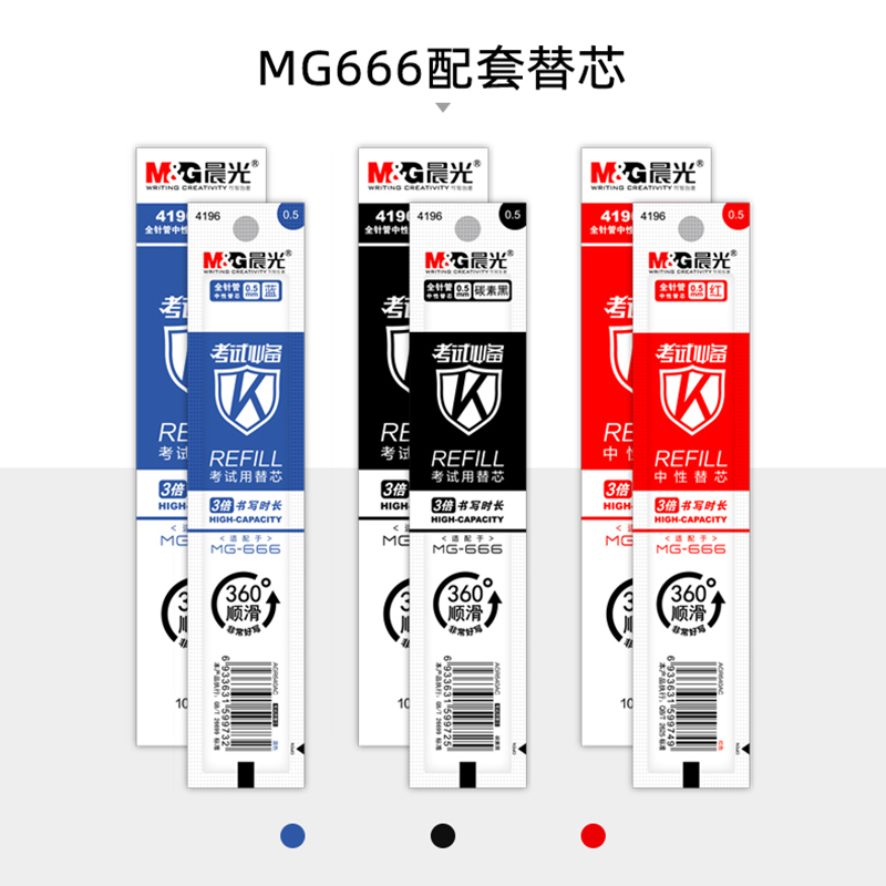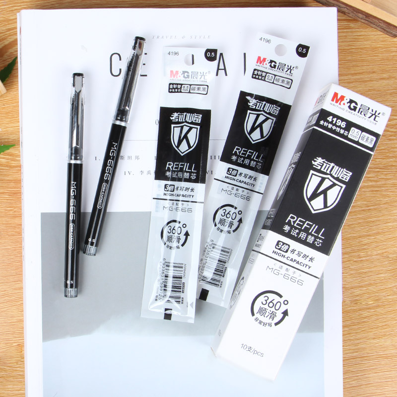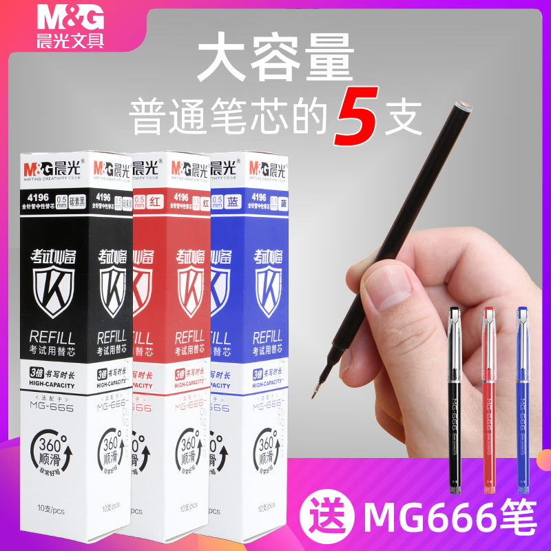 Morning light MG-666 Large capacity Medium Pen Black 0 5mm Exam Refill Students With Speed Dry Refill Press 4196 Stationery Official Flagship Store 0 5 Black Full Needle Tube Red agpb450