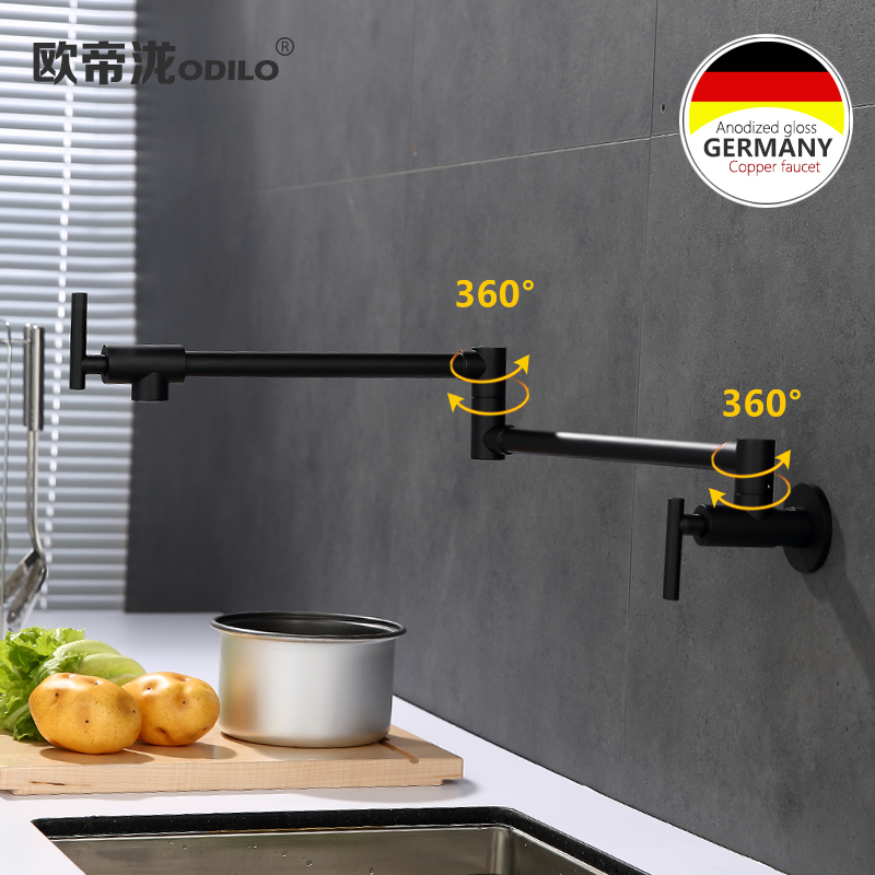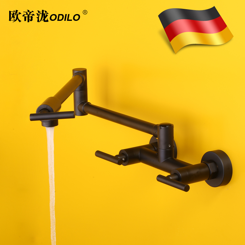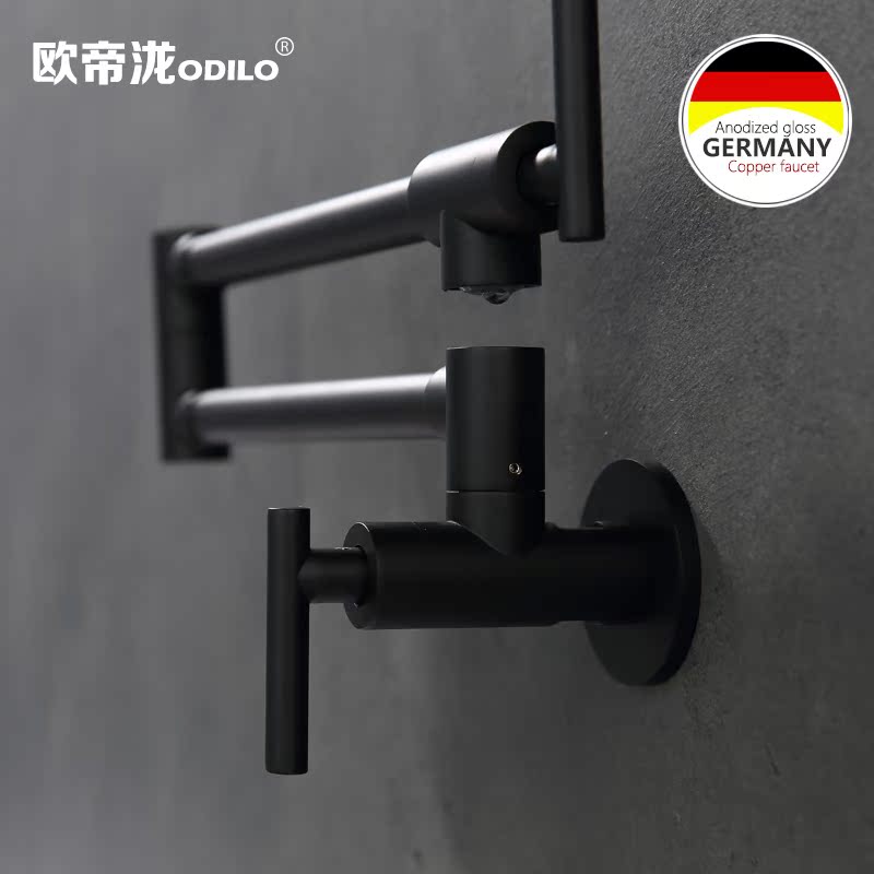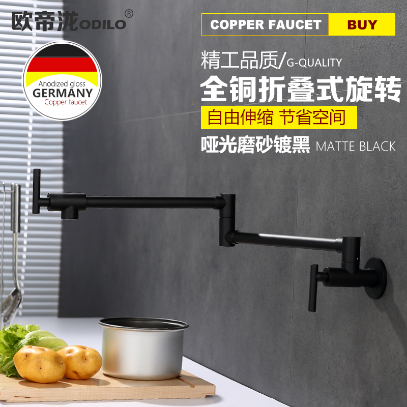 All copper kitchen faucet single cold into the wall folding rotary washbasin sink sink sink faucet matte black
