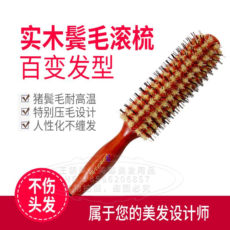 Pig Mane Hair Round Comb Roll Comb Rolls Hair Comb Blow Molding Home Hair Salon Professional Beauty Hair Wood Comb Inner Button
