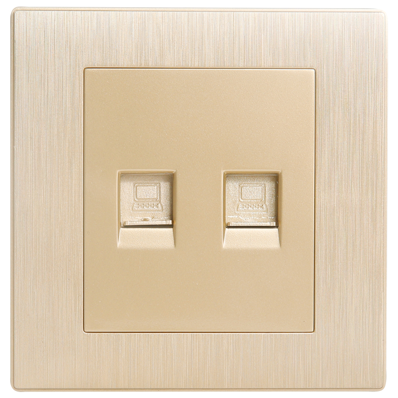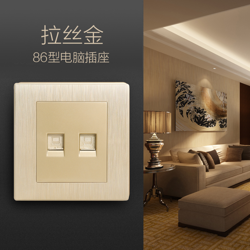 Type 86 wire-drawn gold dual-port network socket panel broadband network module switch socket panel two-bit computer