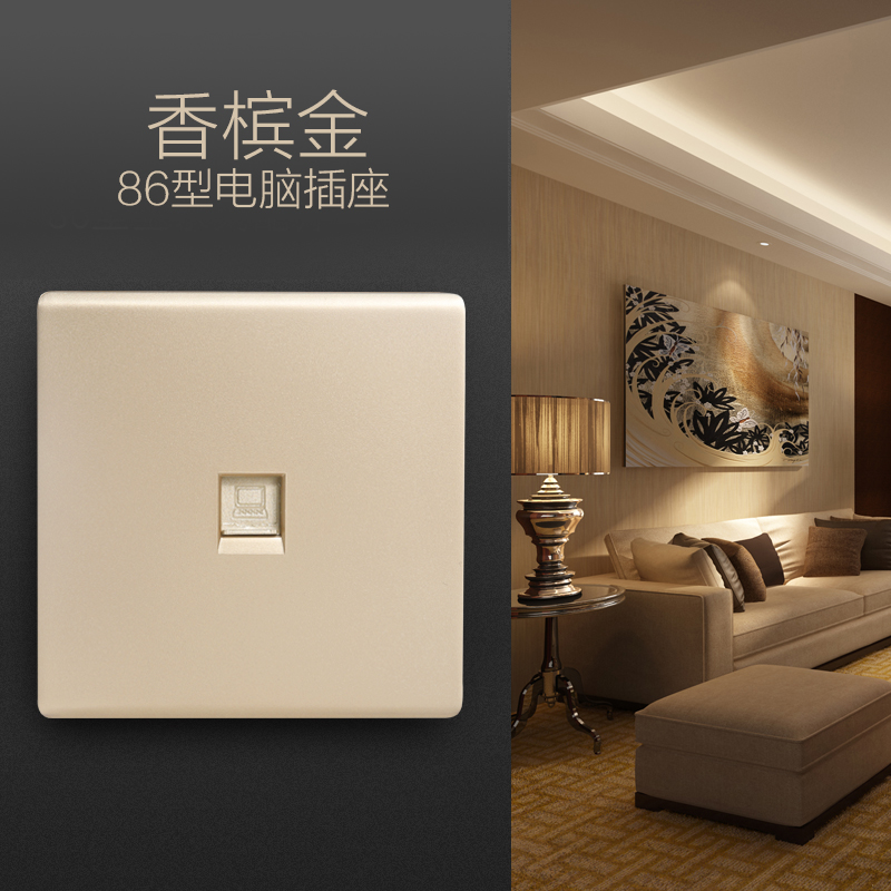 Type 86 Champagne Golden Single Port Internet Socket Panel Broadband Network Road Module Switch Socket panel One computer