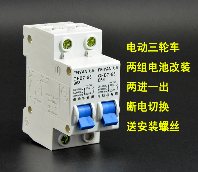 Electric tricycle 2P power off air switch dual circuit switch two sets of battery conversion protection two in and one out