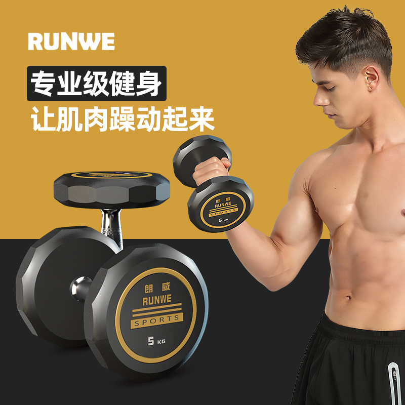 Langwei fixed dumbbells Men's fitness Home gym special commercial rubber-coated dumbbell set fitness equipment