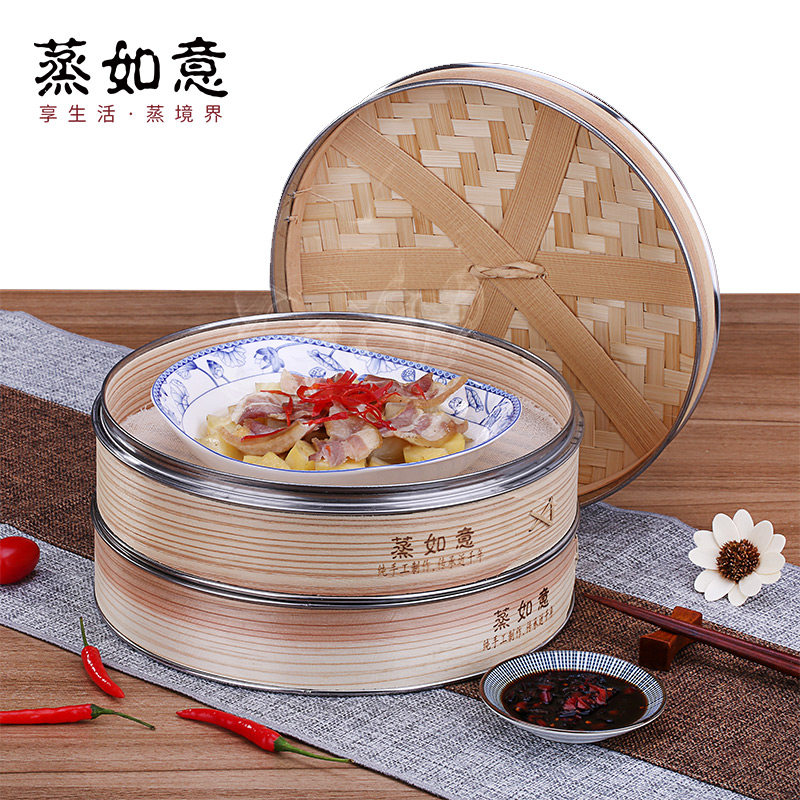 Steamed Ruyi Stainless Steel Wood Steam Cage Bamboo Commercial Home Big Trumpet Small Cage Buns Steamed Buns Hand Steaming Rack Steam