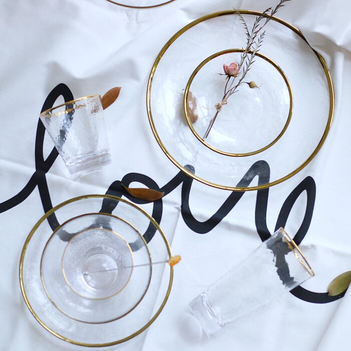 West-style ins hand painted gold edging glass bowls disc fruit tray dessert Shara tray wedding banquet hem tray