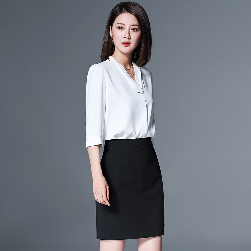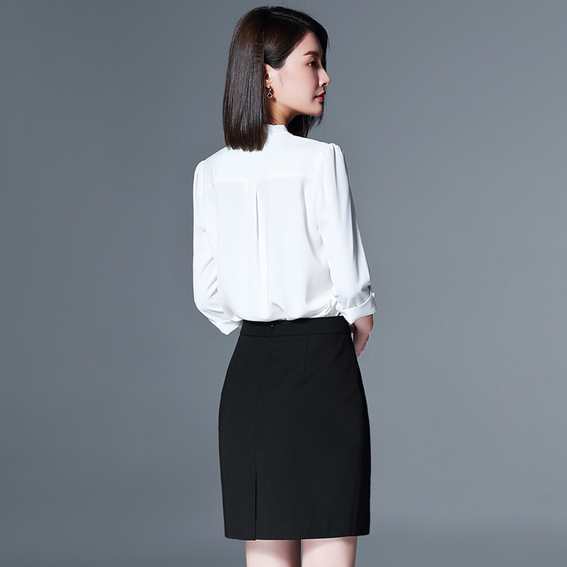 White mid-sleeve shirt Black skirt