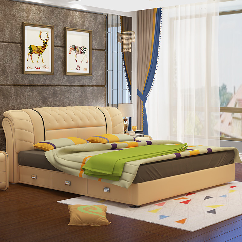 Three-drawer leather bed, comfortable and breathable latex mattress