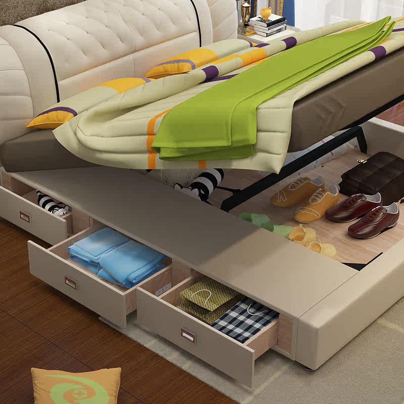 Leather bed Nordic wedding bed modern minimalist master bedroom upholstered bed 1 8 meters double bed 1 5 meters small apartment leather art bed