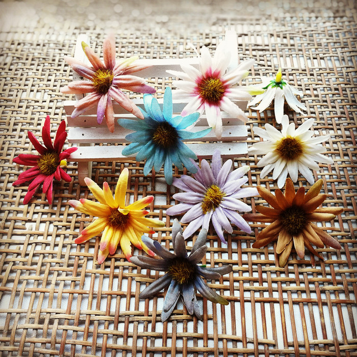 Flower sea diy simulation flower flower head wreath material hand-made material straw hat flower corsage gray oil painting daisy
