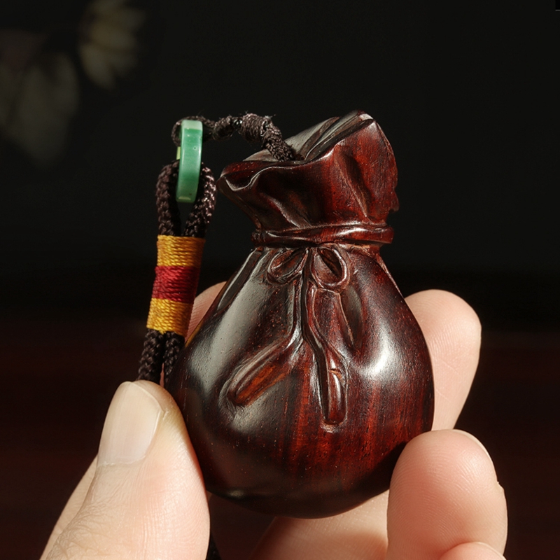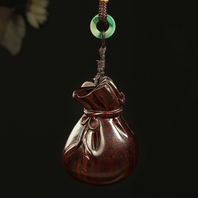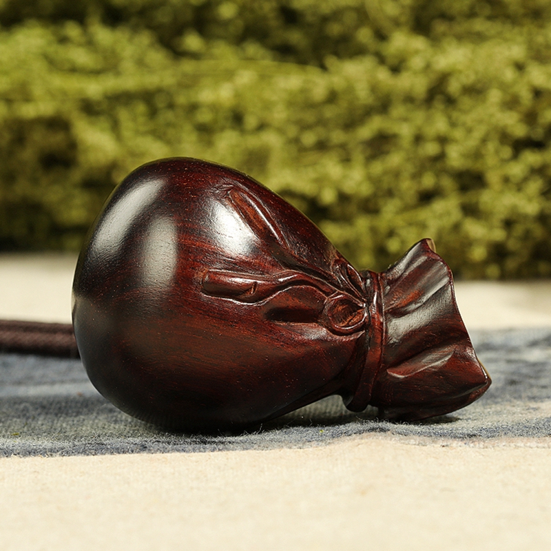 Small leaf red sandalwood plain face lucky bag handle piece Men's solid wood wallet keychain pendant pendant