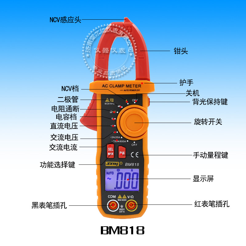 Binjiang Instrument Digital Clip Meter BM818 BM819 High Precision Multifunction Digital Current Meter Automatic Range