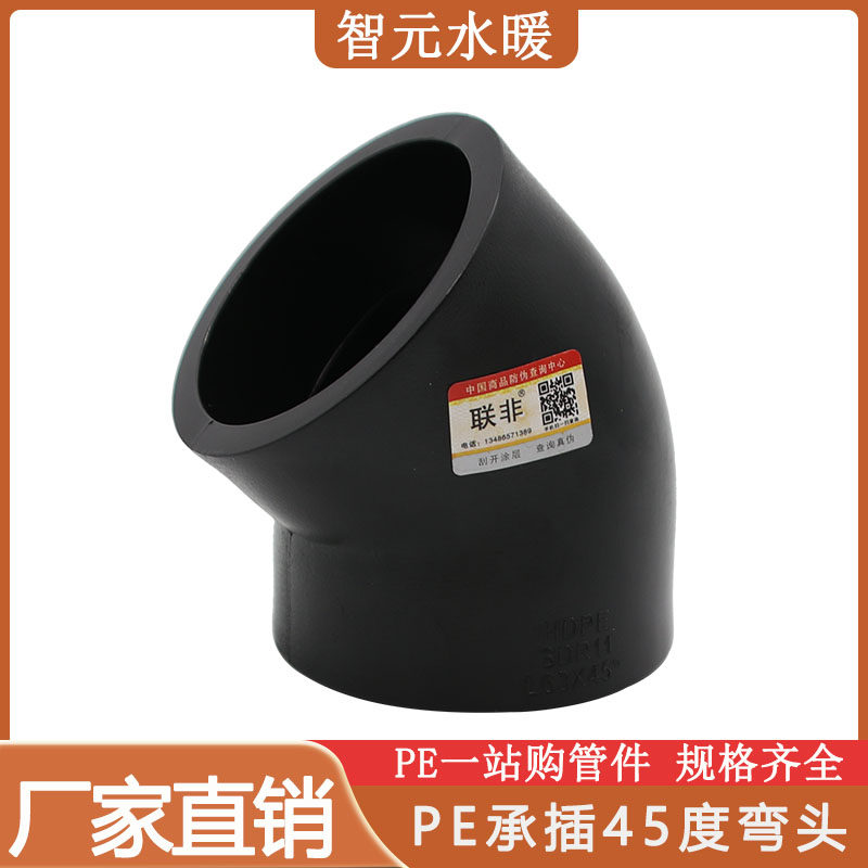 Original direct selling pe socket hot melt equal diameter 45 90 degree elbow L20 25 32 to 110 drinking water pipe fittings