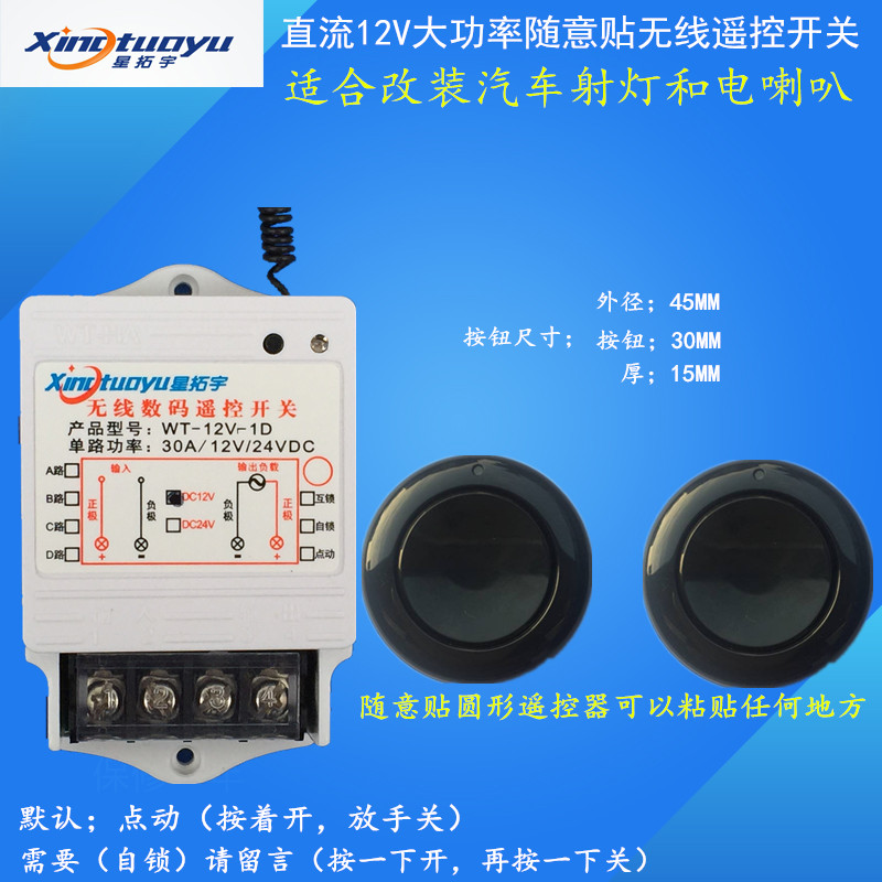 Star Tuoyu DC 12V single high-power wireless remote control switch speaker LED living room light dual free paste transmitter