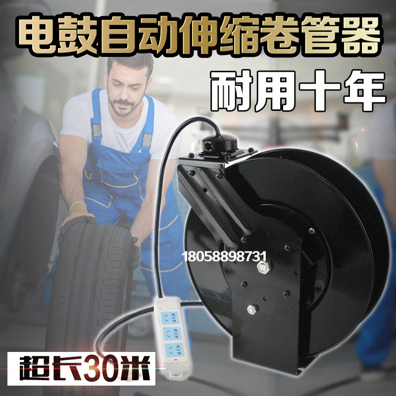 Iron plate electric drum reel automatic telescopic reel 30 meters high-power socket national standard pure copper cable reel