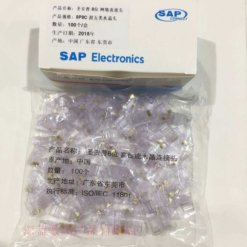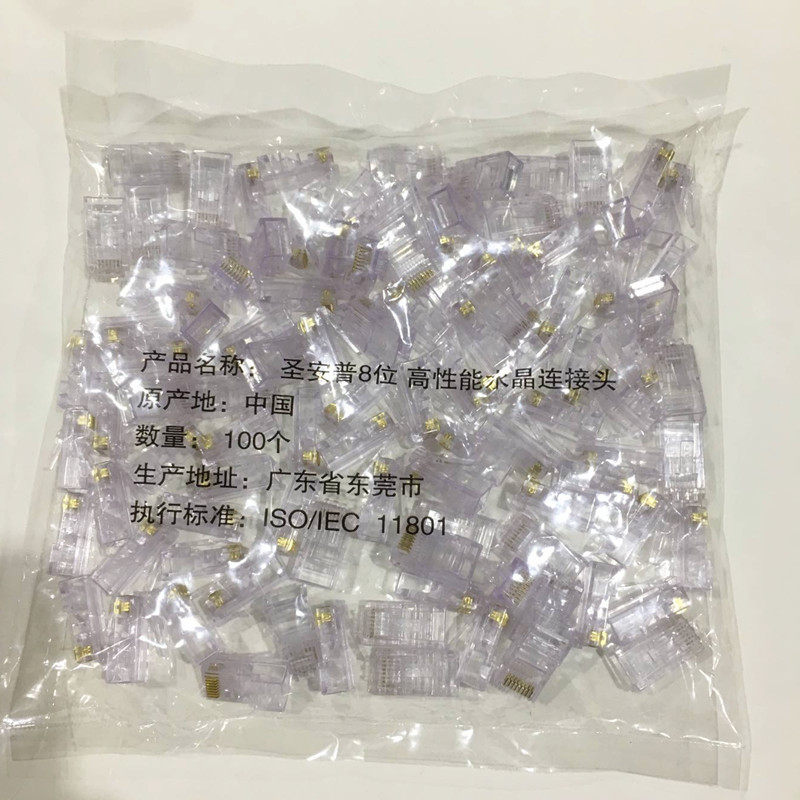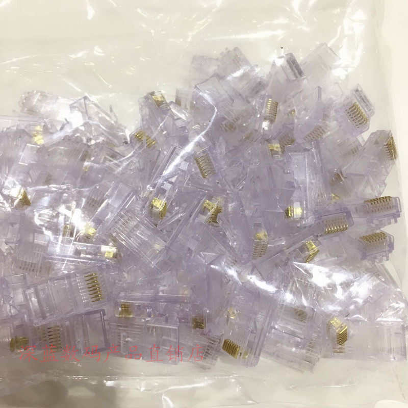 Network line crystal head super five categories 8-core gold-plated rj45 connector pure copper computer network line connector 100