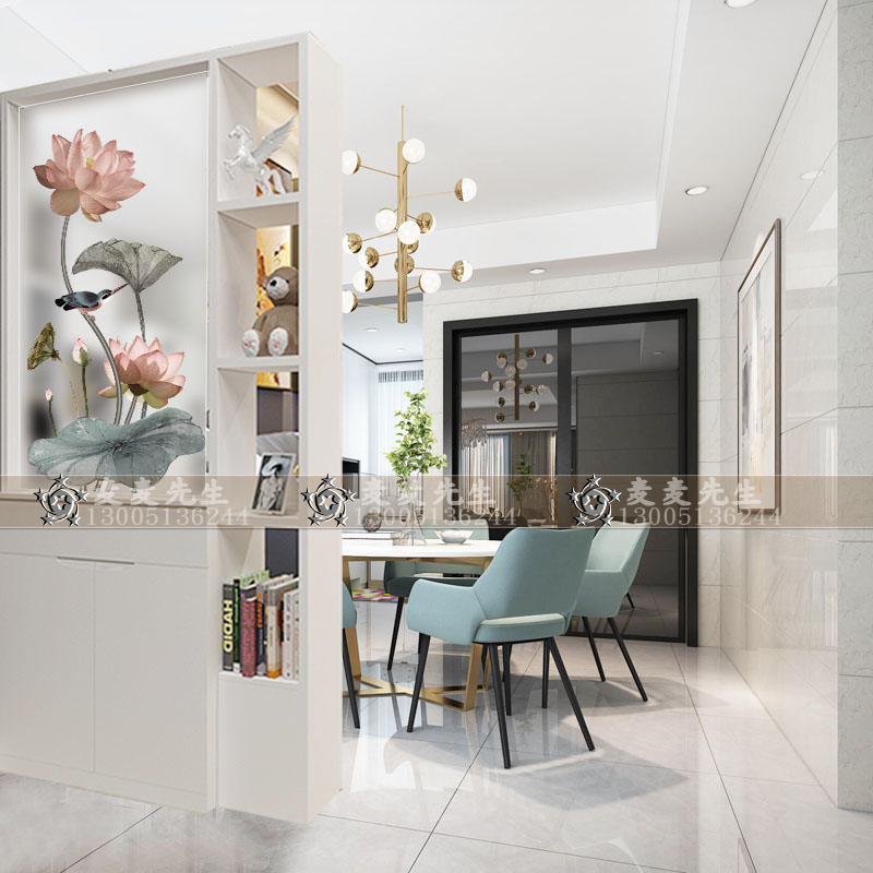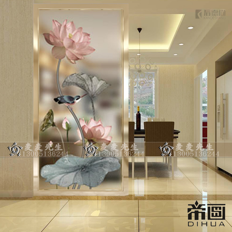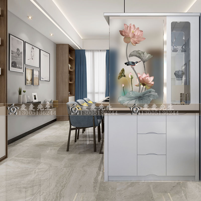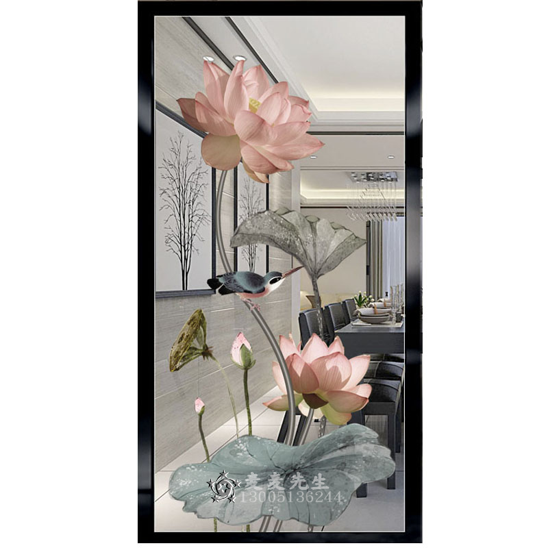 Eurostyle Minimalist Art Glass Xuanguan Background Wall Modern Living Room Door Partition Screen Transparent Frosted Lotus Flowers