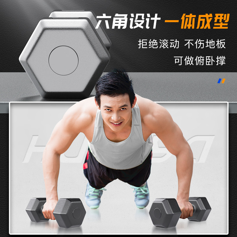 Hexagon dumbbell men's arm muscle home fitness equipment 2 5kg10kg women's gymnastics package dumbbell