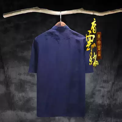 New silk turtle pattern Xiangyun yarn Tang suit men's short-sleeved top summer shirt Chinese stand-up collar men's shirt
