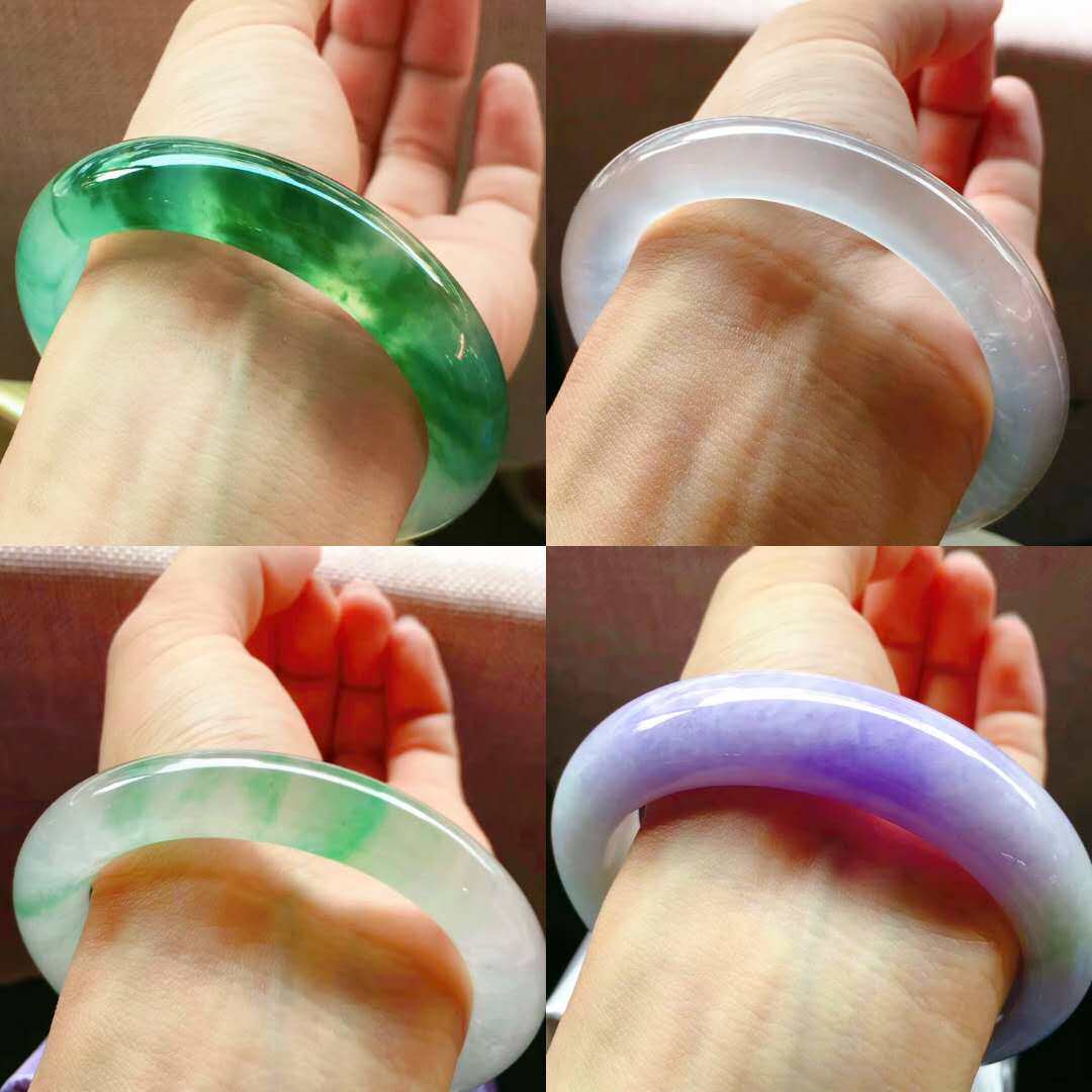 Ice breeds Myanmar natural A goods emerald jade bracelet female Guido jade bracelet round bar and green with a flower mother