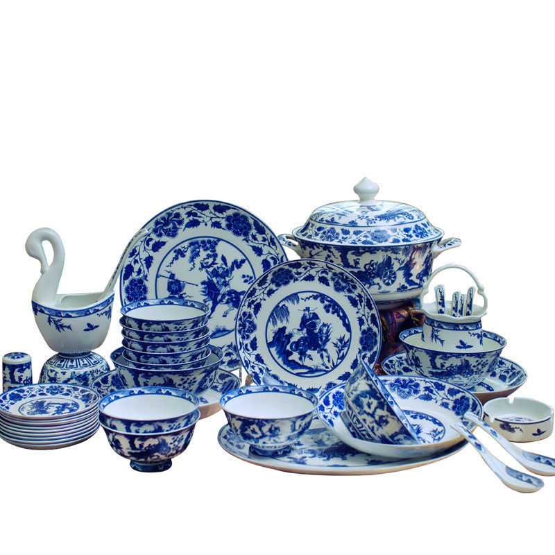 Jingdezhen 60 head glazed with colored green flower porcelain imitation ancient ghost valley Sub-mountain cutlery dishes Dish Suit Home Delivery Giao