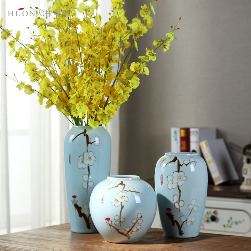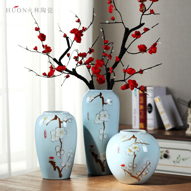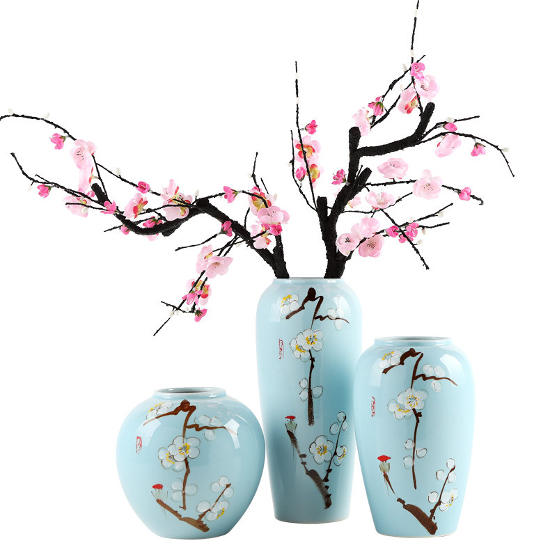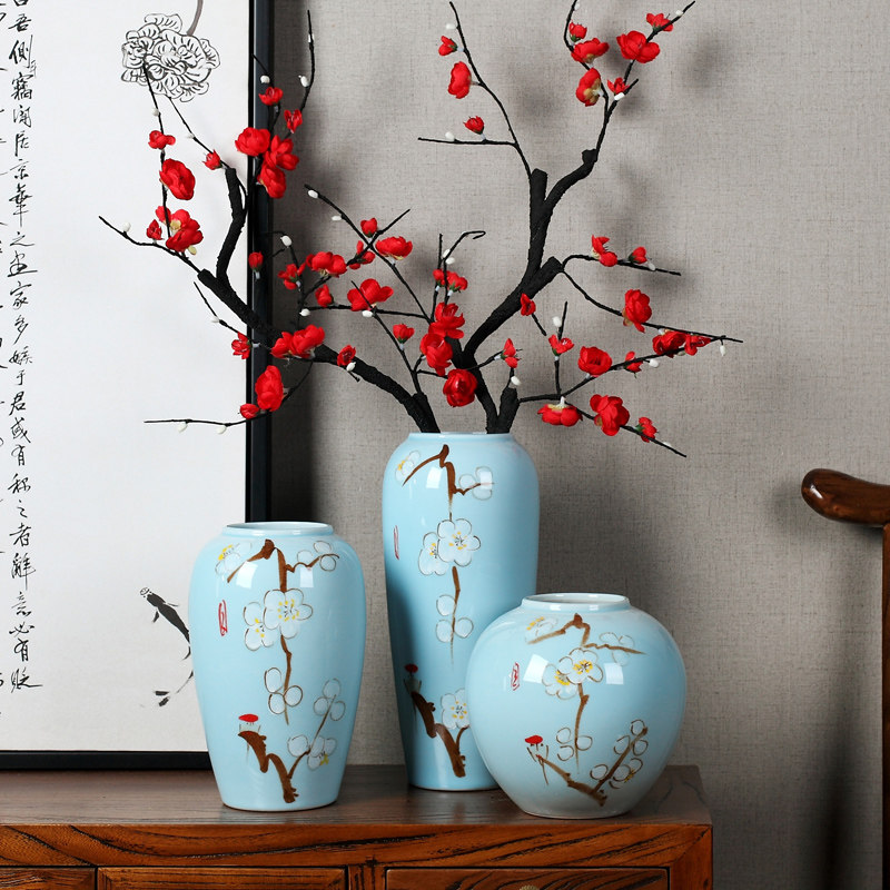 Modern simple ceramic flower arrangement vase Chinese Jingdezhen creative living room blue dried flowers home decoration ornaments