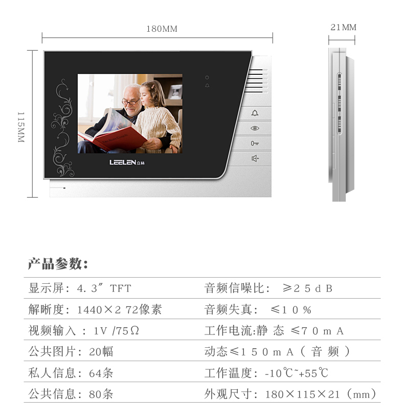 leelen V-26 color 4 inch video extension L8-5004VCW(8) color video doorbell