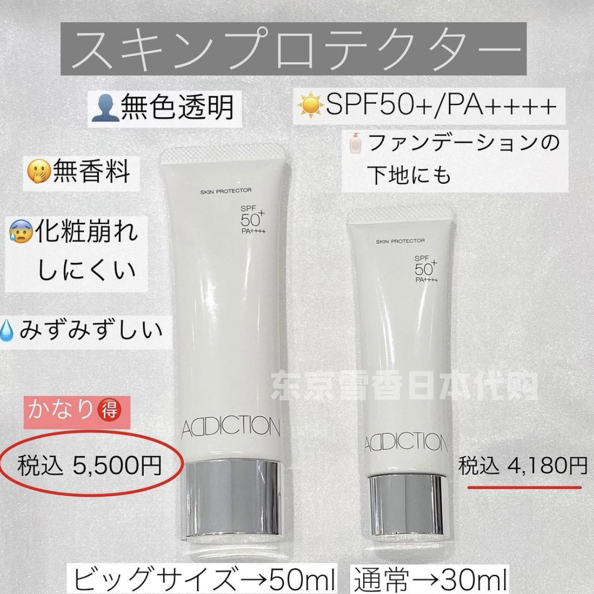 Japan Direct mail ADDICTION colourless transparent sunscreen Isolation cream SPF50 nourishes water 30 30 50g