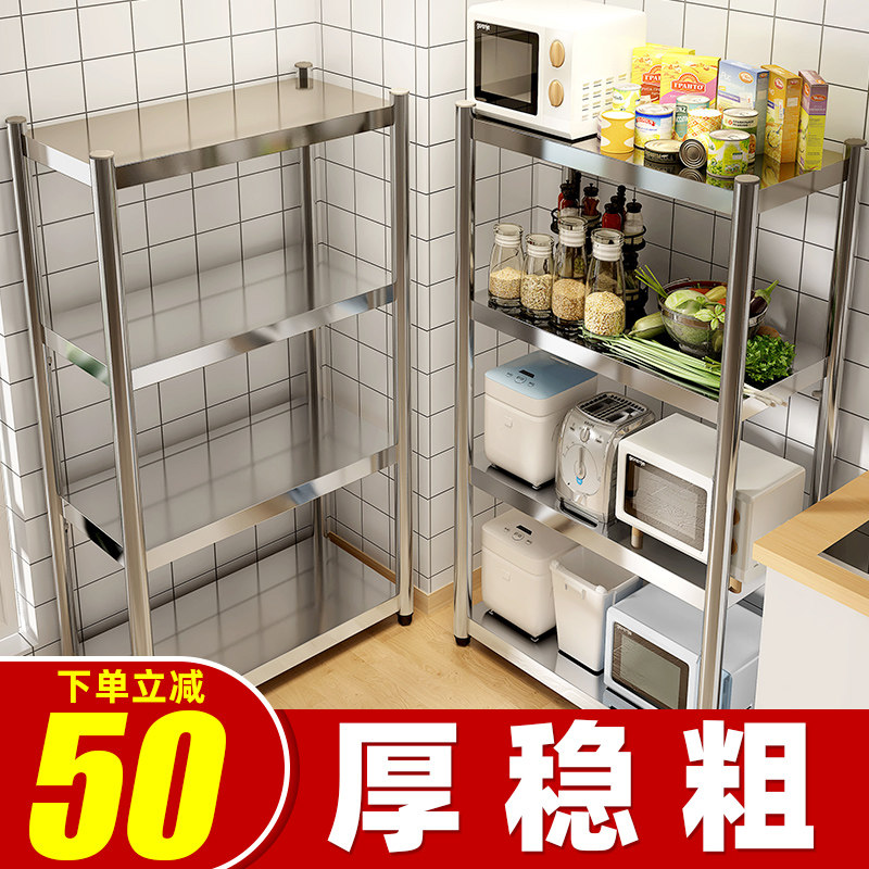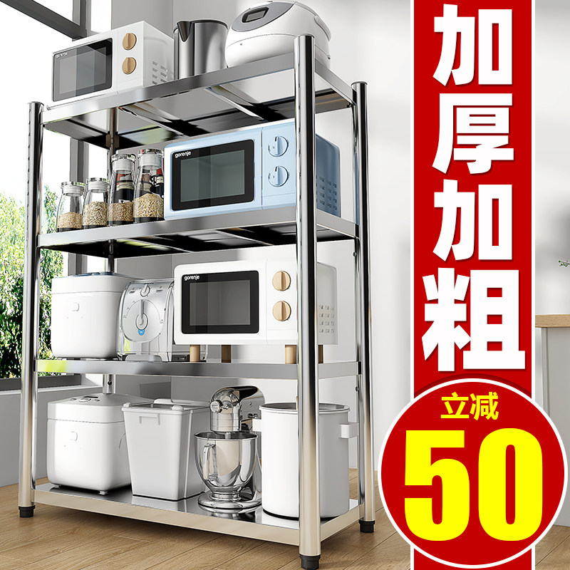 Stainless steel kitchen shelf Floor-to-ceiling multi-layer microwave oven multi-function storage shelf Three-layer storage shelf